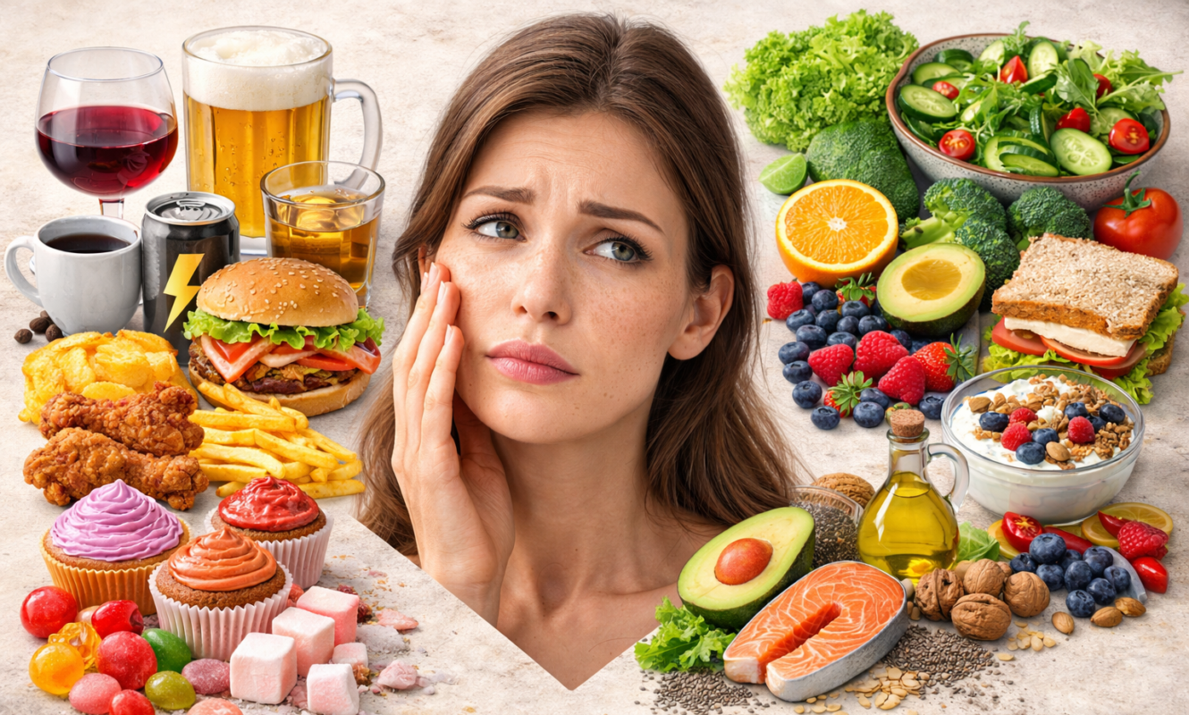 What you eat does not just affect your weight or energy levels. It can also influence how your skin looks and feels. Certain foods and drinks may contribute to dehydration, puffiness, reduced elasticity, and a duller complexion when consumed too often.